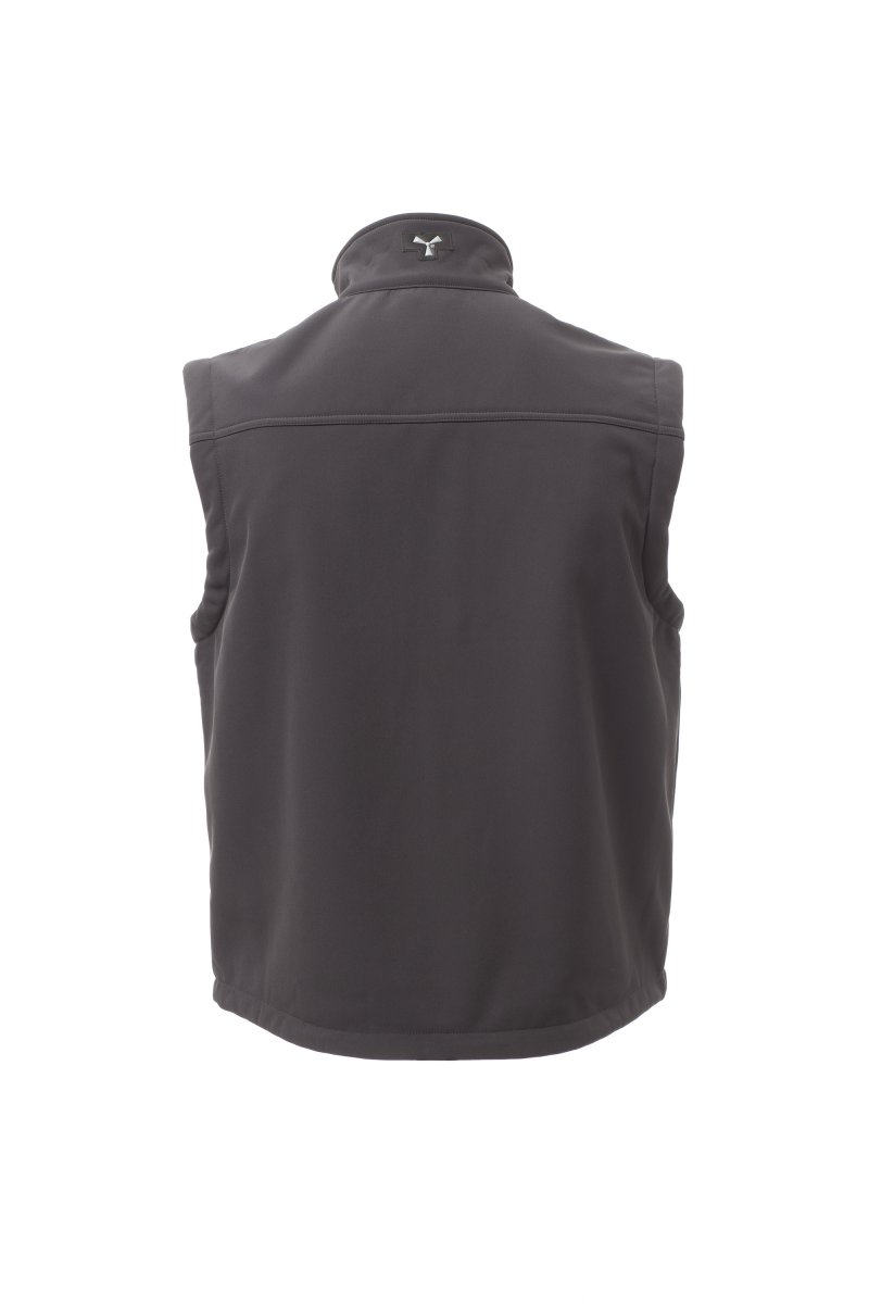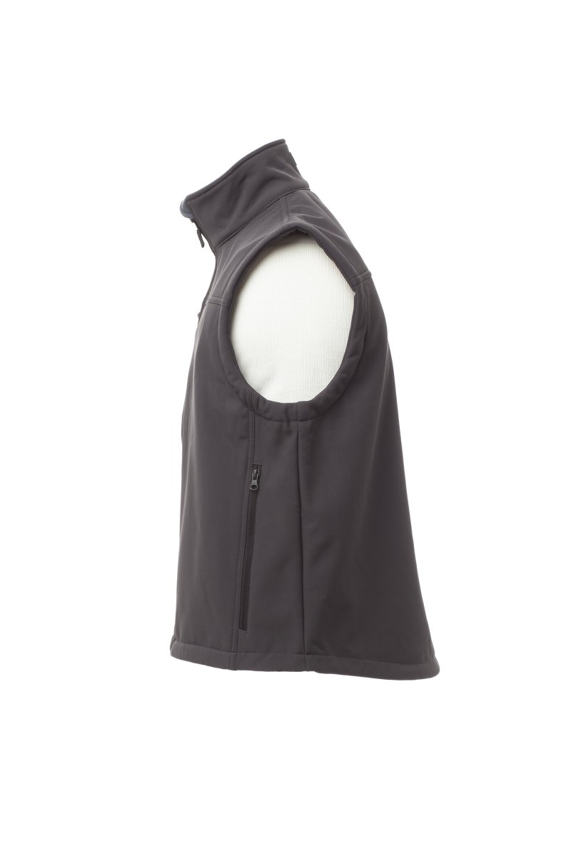 WP 8000 mm H2O, WVT 5000 g/m² 24h. Herenbodywarmer, comfort-fit, met lange verstevigde SBS-rits, twee zakken met rits opzij, borstzak met uitklapbare badgehouder, taille met trekkoord. Binnenzak en twee ritsen voor eenvoudiger bedrukken en borduren op de borst en schouders.