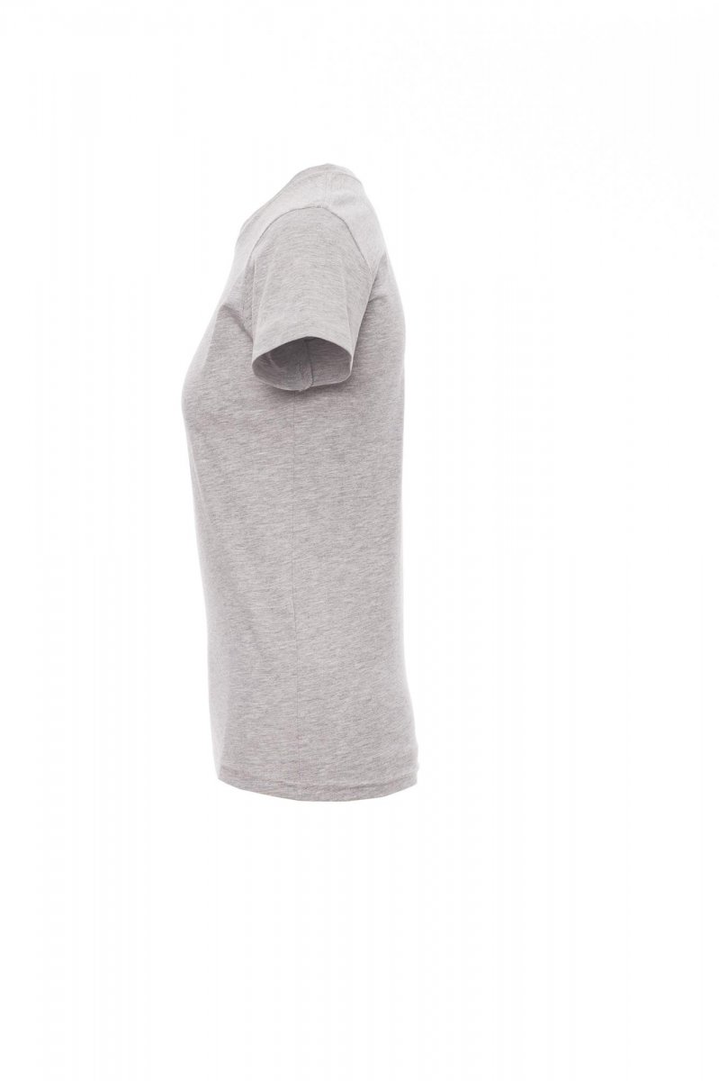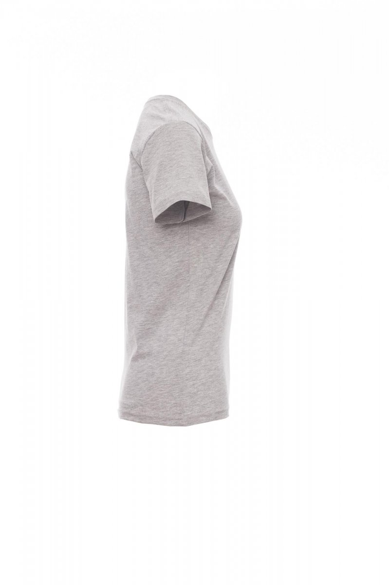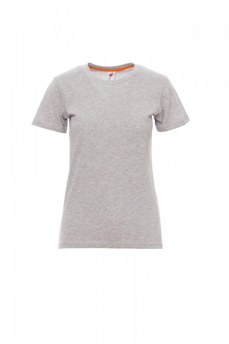 Nauwsluitend dames-T-shirt met korte mouwen en ronde hals, met afgezette geribde halsrand van 1,5 cm van een mix met spandex met stiksel aan de buitenkant, contrasterende versterkingsband van schouder naar schouder zichtbaar aan de binnenkant van de nek, elastische naden, zijnaden.