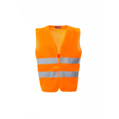 Bodywarmer met hoge zichtbaarheid, met reflecterende strepen, dubbel gestikte naden, klittenbandsluiting, rondom afgeboord.