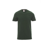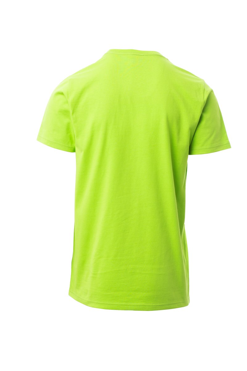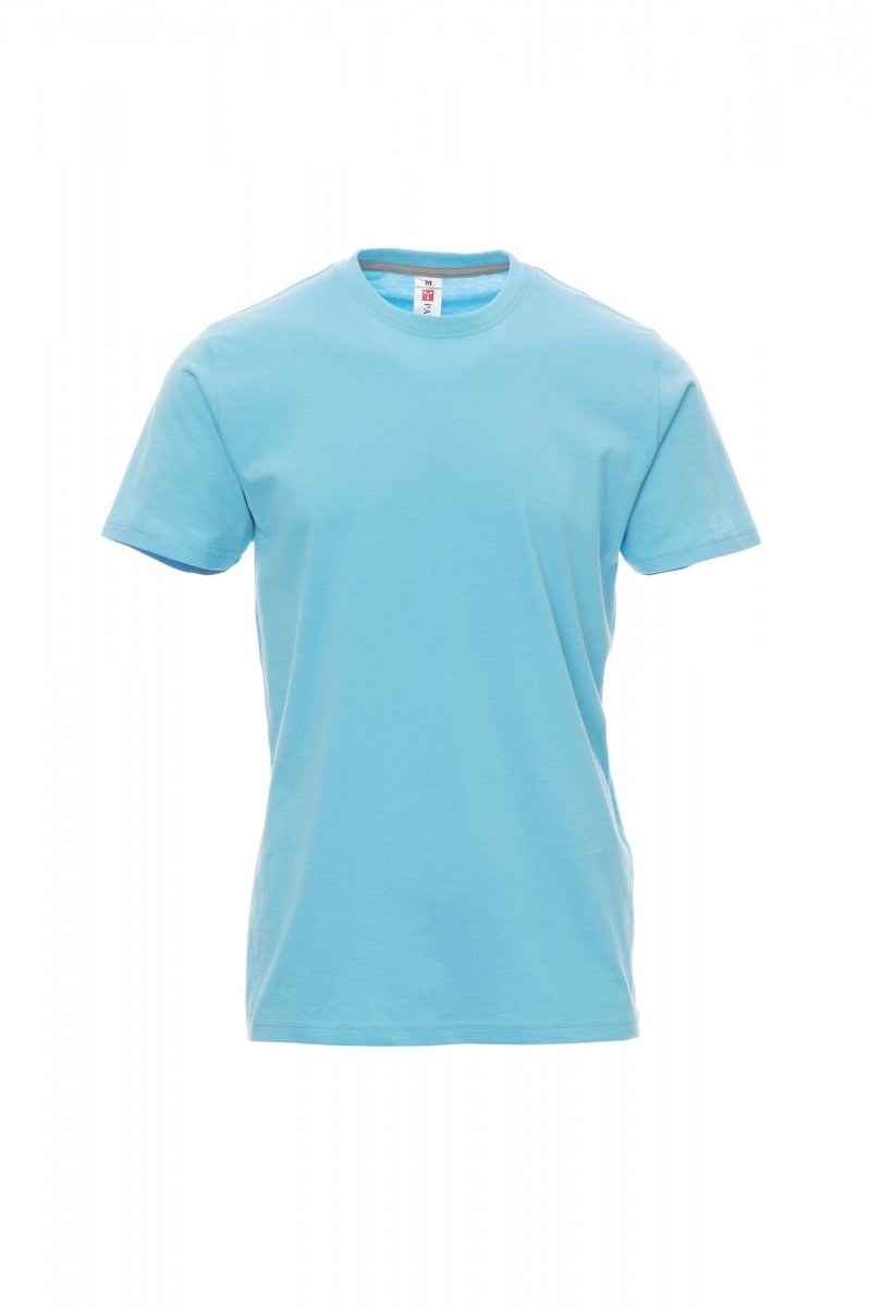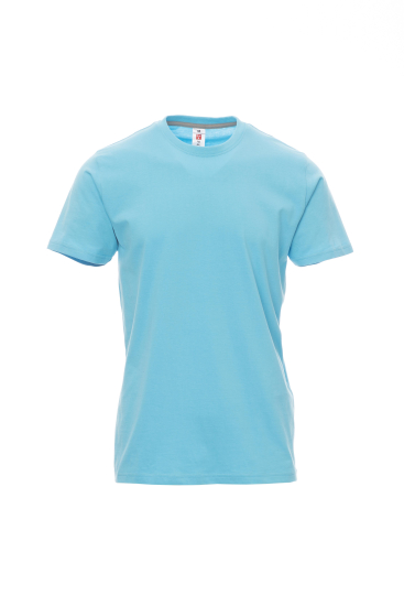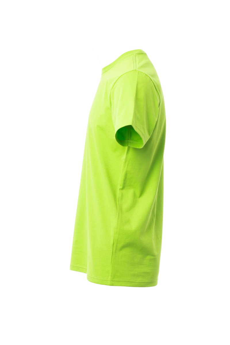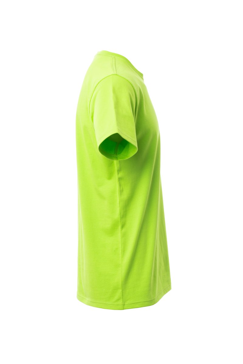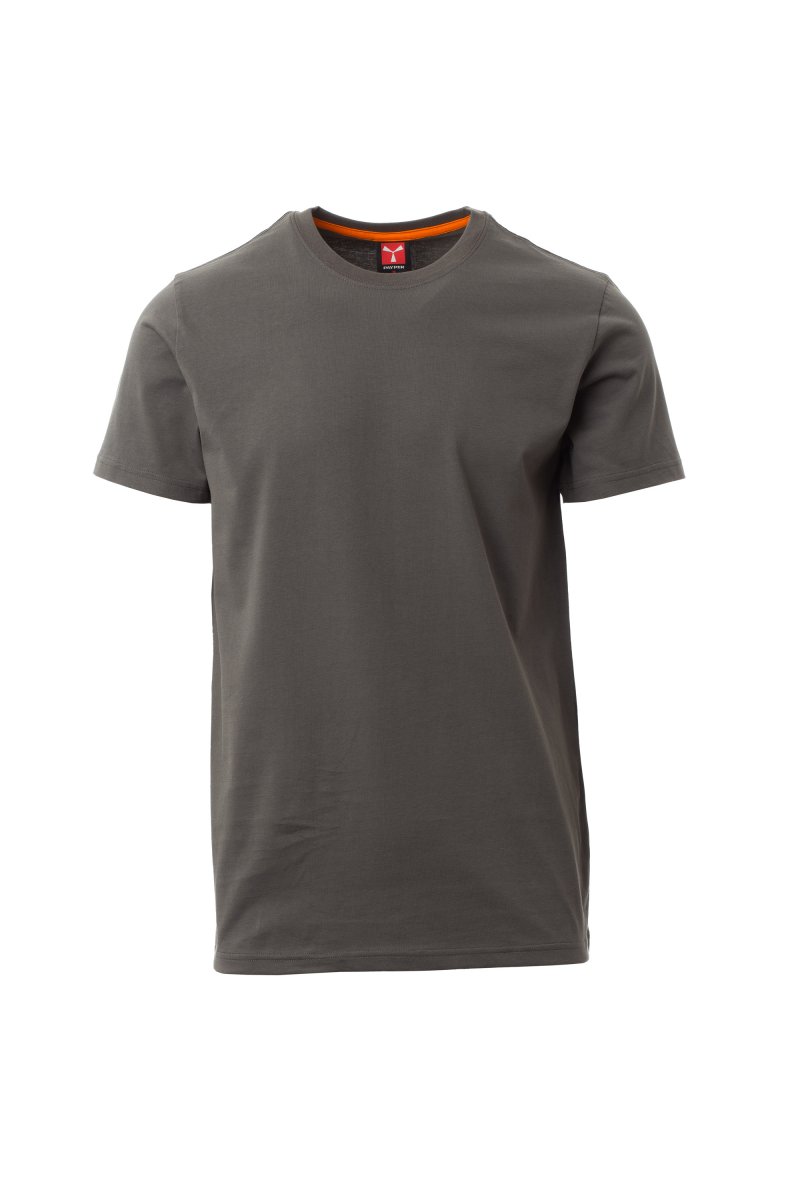 Heren-T-shirt met korte mouwen en ronde hals, met afgezette geribde halsrand van 1,5 cm van een mix met spandex met stiksel aan de buitenkant, contrasterende versterkingsband van schouder naar schouder zichtbaar aan de binnenkant van de nek, elastische naden, zijnaden.