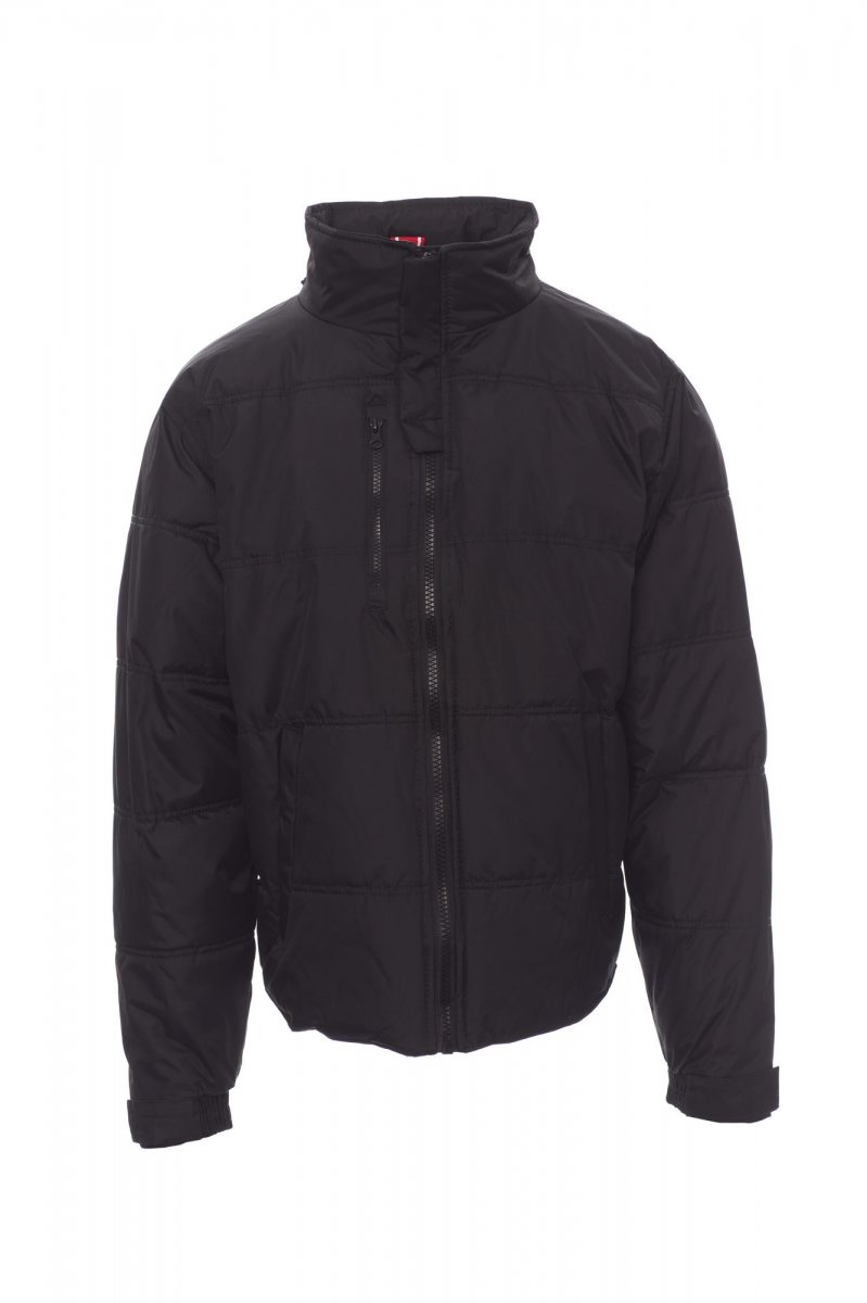 Herenjas, kunststof rits van 8 mm met metalen runner, uitvouwbare capuchon, verstelbare manchetten, twee zijzakken met rits, een borstzak. Binnenzijde: gewatteerd, contrasterende voering van fleece.