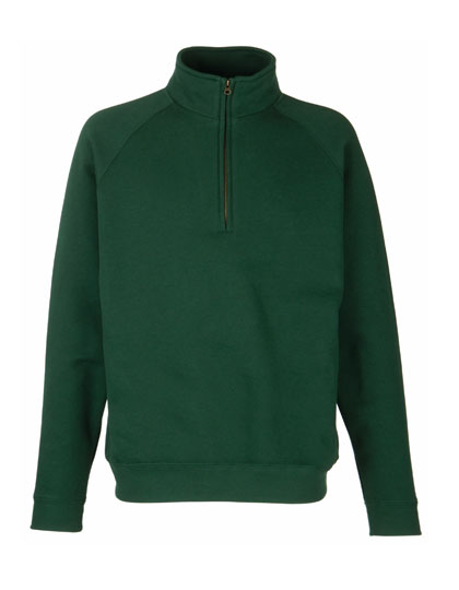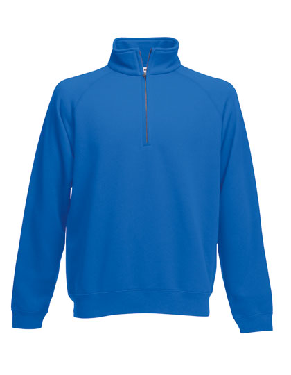 Zip neck sweat Premium. 70% katoen-30% polyester. Gewicht: 280 g/m². 1/4 ritssluiting. Raglan mouwen. Rib boorden met katoen/elastaan.