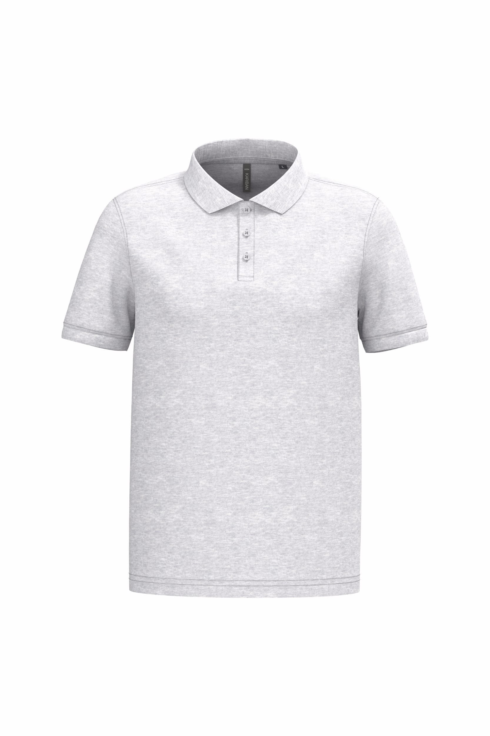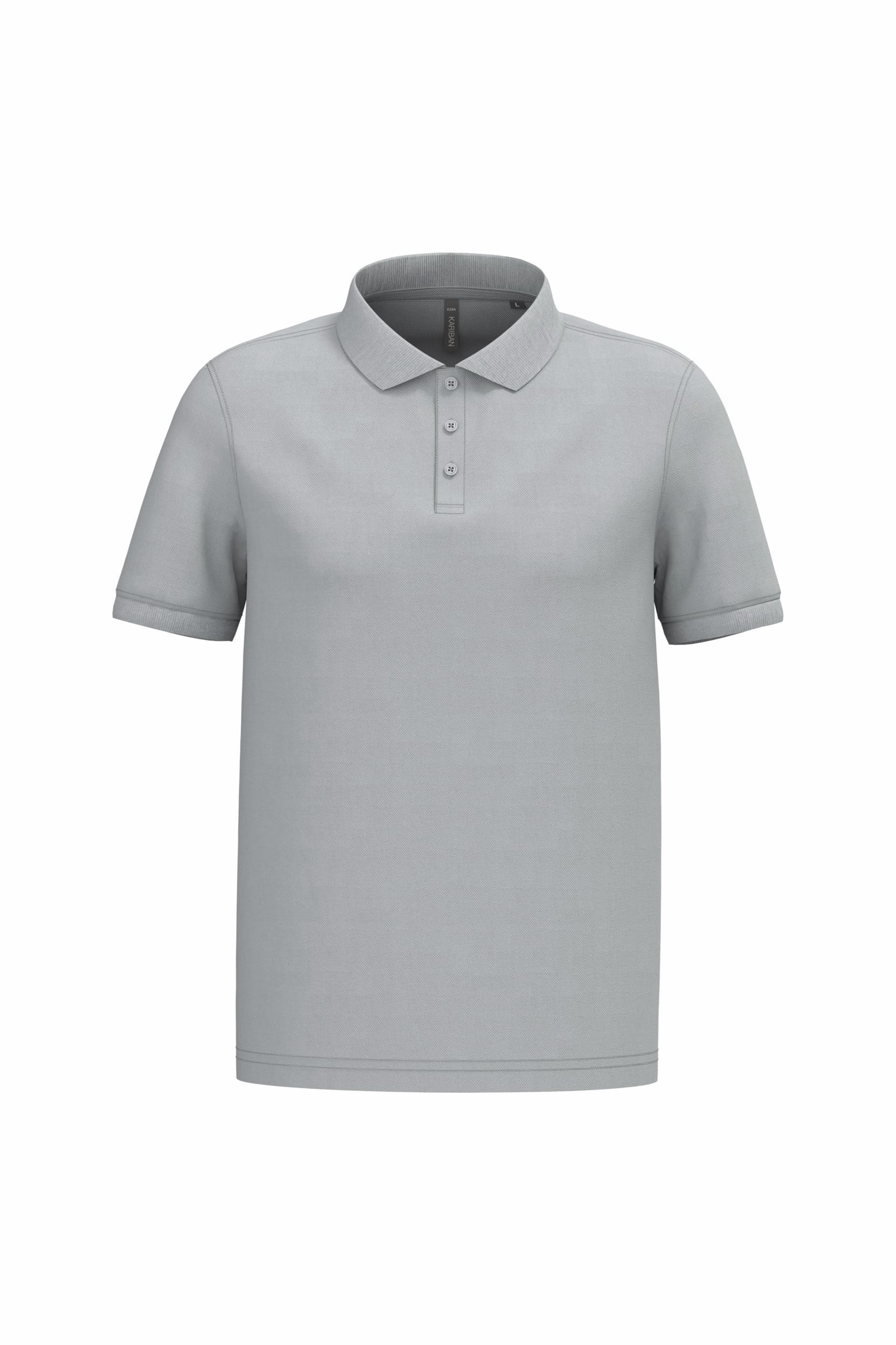 100% voorgekrompen (Oxford grey : 90% katoen / 10% viscose. Ash Heather : 98% katoen / 2% viscose). Ringgesponnen voorgekrompen gekamd katoen. Piqué steek. Rechte snit. Kraag en mouwuiteinden in 1x1 ribboord. Knooplijst met 3 toon-op-toon knopen. Toon op toon nektape. Gecertificeerd STANDARD 100 by OEKO-TEX®N° CQ1007/7, IFTH.
